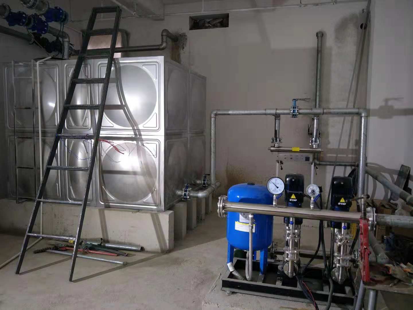 河北唐山達意科技定購恒壓供水設備+不銹鋼水箱+紫外線消毒器